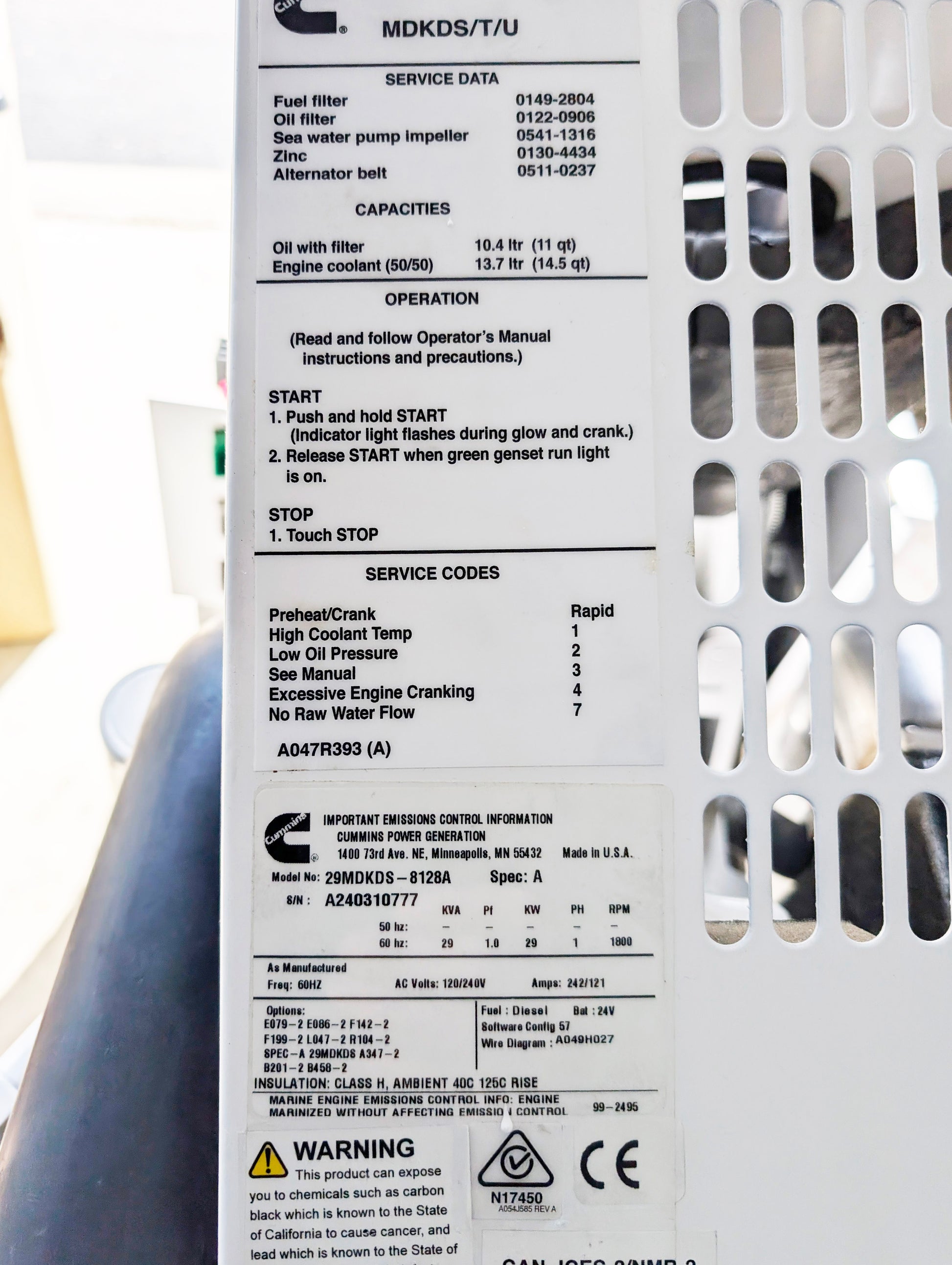 New damaged Onan 29MDKDS marine generator - Damaged during installation, never run